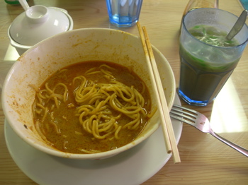 左がlaksa(辛いヌードル)で、右がcendol(甘いココナッツミルク)