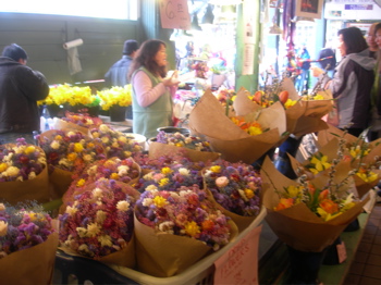 手前にある小さな花束は1個2ドルくらいやったと思う。(USドル)
